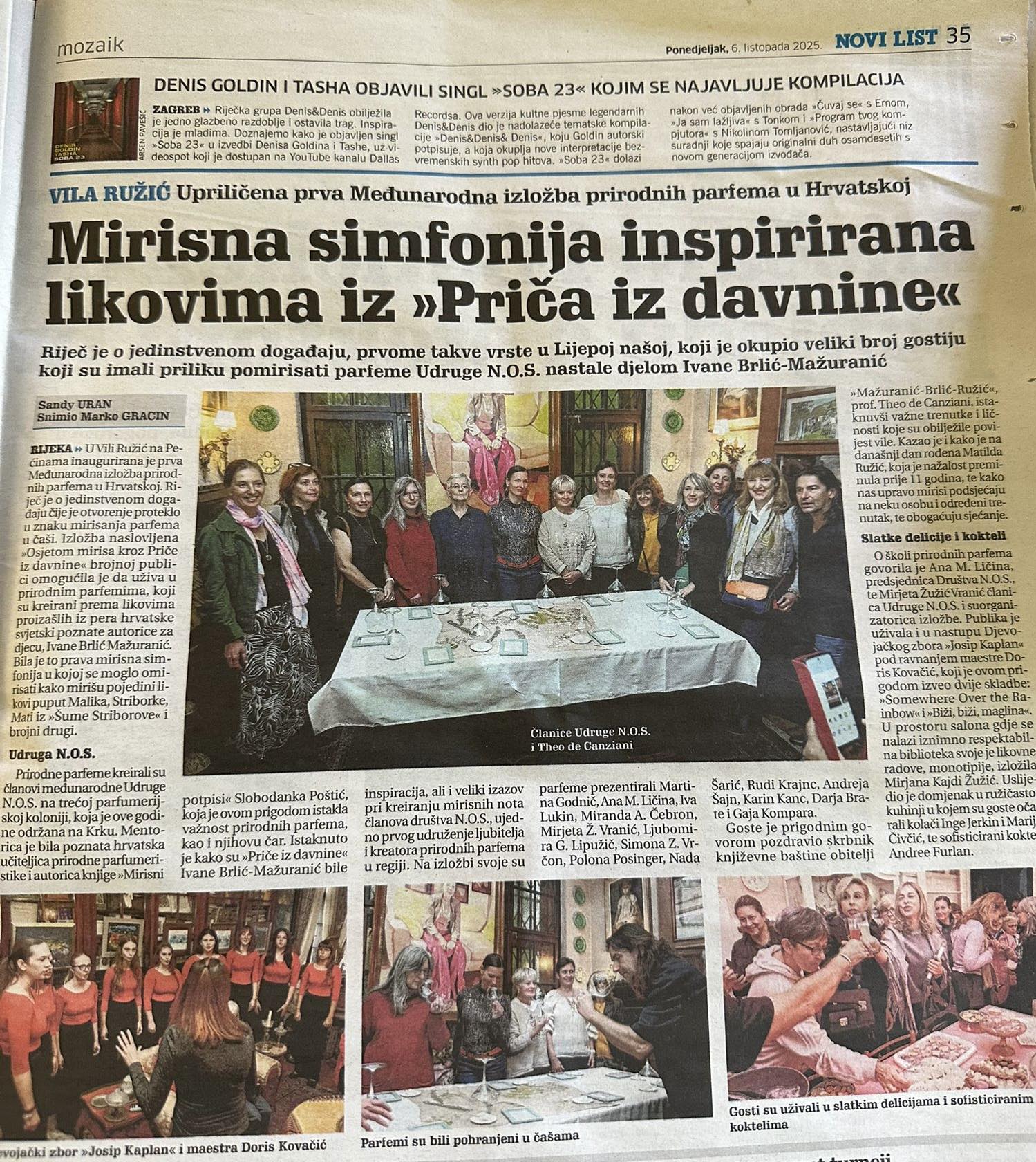 Izložba u vili Ružić je bila međunarodnog karaktera, jer su predstavljene parfeme krairale osobe iz Slovenije, BiH i Hrvatske. Bio je to sjajno organiziran, nenadmašan događaj koji je intenzivno angažirao čula i, usprkos hladnoći i kiši, unosio toplinu oko srca i oplemenio nedjeljno prijepodne!